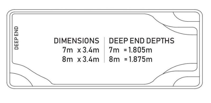 Featuring the same configuration, radius corners and curved steps, the Lachlan is the more compact successor to the Franklin. The narrower design makes it perfect for backyards with less space. Available in both a 7m and 8m long option.