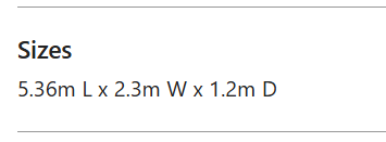 | Nicole 5m | 5.36m | 2.3m | 1.2m | 1.2m |