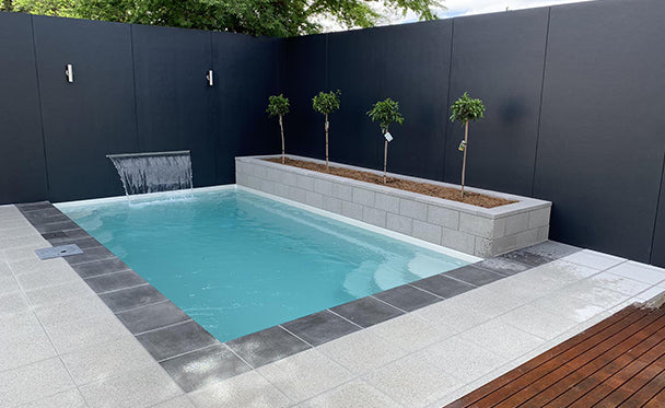 The Saxby is small but mighty. Coming in at under 3m wide, it's a great option for smaller side yards and courtyards, and comes in 4m and 5m lengths. With a large clear space at the deep end wall, it's also the perfect pool to add optional swim jets for an added spa feel.